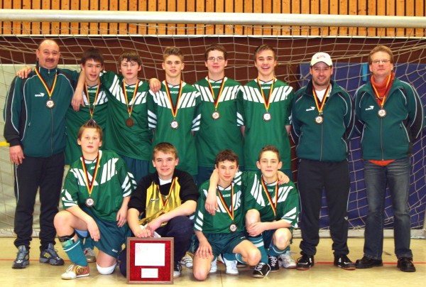 Die C-Jugendfußballer des TSV Schöppenstedt vertraten als Kreismeister den Kreis Wolfenbüttel bei der diesjährigen Bezirksmeisterschaft. Von über 200 Mannschaften im Bezirk Braunschweig erreichte man am Ende einen hervorragenden sechsten Platz. Am 19. Februar mussten die Schöppenstedter zunächst in der Zwischenrunde Süd antreten, welche im Süden Niedersachsens, in Duderstadt, stattfand. Im ersten Spiel unterlag man SVG Einbeck denkbar knapp mit 1:2. In den weiteren Spielen wurden die Schöppenstedter immer stärker. So drehten sie einen 1:3 Rückstand gegen Goslar 08 noch in einen 5:3 Sieg. Nach Siegen über Göttingen 05 (2:1) und VfR Osterode (4:2), hatte man schon vor dem letzten Spiel die Sensation geschafft und sich für die Endrunde qualifiziert. Dieses bedeutungslose Spiel gegen Fortuna Lebenstedt verlor man mit 1:2. Dadurch wurde man hinter SVG Einbeck und Fortuna Lebenstedt dritter in der Staffel Süd. Die Endrunde wurde am 25. Februar in Vienenburg ausgespielt. Zu den drei Mannschaften aus der Staffel Süd kamen die ersten drei Mannschaften aus der Staffel Nord. Dort erreichten der VfL Wolfsburg, MTV Gifhorn und Freie Turner Braunschweig die Endrunde. In so einem starken Teilnehmerfeld fühlten sich die Schöppenstedter in ihrer Außenseiterrolle eigentlich ganz wohl. Gegen den hochgehandelten MTV Gifhorn verlor man, nach dreimaliger Führung, erst in der Schlussminute mit 3:5. Als nächster Gegner wartete der haushohe Favorit VfL Wolfsburg. Bis zur Hälfte des Spiels hielt der TSV die Partie noch offen, doch nach dem 0:1 drehte Wolfsburg auf und die Partie ging mit 0:4 verloren. Auch gegen den SVG Einbeck, mit dem man in der Vorrunde noch gut mithielt, verlor man deutlich mit 0:6. In den letzten beiden Spielen gaben die Schöppenstedter noch mal alles, doch gegen Fortuna Lebenstedt und Freie Turner Braunschweig reichte es jeweils nur noch zu einem 1:1. Wobei man in diesen Spielen achtmal Pfosten oder Latte traf. Mit einem Sieg aus einem der beiden Spiele hätte man sich bis auf den vierten Platz vorgeschoben. Trotz alledem können die Schöppenstedter mit dem Erreichten sehr zufrieden sein, sie haben den Kreis Wolfenbüttel würdig vertreten. Bezirksmeister wurde der VfL Wolfsburg, der ungeschlagen blieb, gefolgt von der SVG Einbeck, MTV Gifhorn, Freie Turner Braunschweig, Fortuna Lebenstedt und dem TSV. Bedanken möchte sich die Mannschaft noch bei den Eltern und den Fans, die sie zahlreich bei beiden Turnieren unterstützt haben. Außerdem möchten sie sich bei Dieter Schunk vom Autohaus Schunk bedanken. Er stellte kostenlos einen Kleinbus zur Verfügung, mit dem man die weite Fahrt nach Duderstadt bewältigten konnte. | Bilder zum Bericht klicken zum Vergrößern |