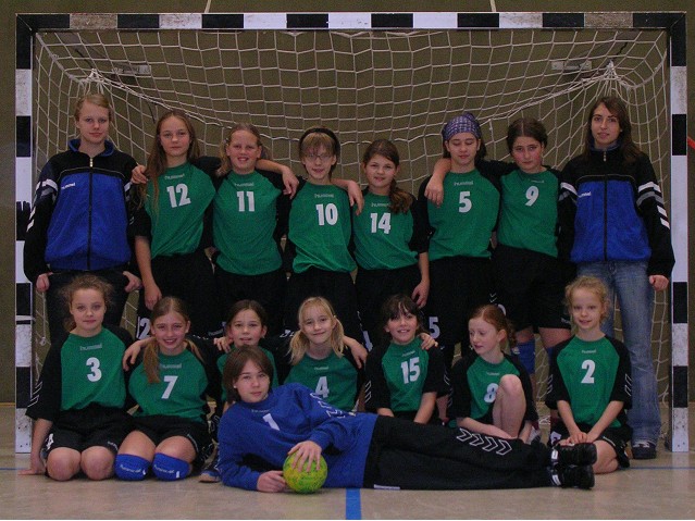 Wir bedanken uns bei unserem Sponsor für die neue Ausstattung und die tolle Weihnachtsfeier. Weiterhin möchten wir die Einweihung der neuen Trikots benutzen um uns vorzustellen. Wir sind die im Frühling 2006 gegründete weibliche D- Jugend der Handballabteilung des TSV Schöppenstedt. Das ungewöhnliche an unserer Mannschaft ist ihre Entstehungsgeschichte. Da hatten sich Freundinnen zusammengefunden, die Handball spielen wollten und sich nicht damit abgefunden hatten, dass dies nicht möglich war. Es gab bis dato keine weibliche D-Jugend Mannschaft. Die Mädels hatten Glück und konnten Nele Becker und Lina Hölscher, beide hervorragende Spielerrinnen in der weiblichen A-Jugend, ausgestattet mit Spielerfahrung, Schiedsrichterlehrgang und Jugendleiterkarte für sich gewinnen. Mit der Unterstützung von Joachim Binner formierte sich eine Mannschaft um die beiden Trainer, die Spielfreude und Teamgeist in sich vereint. Nach den Sommerferien startet die Mannschaft in ihre erste Punktspielsaison. Man musste einiges an Lehrgeld bezahlen, ließ sich aber nicht entmutigen, freute sich über jedes Tor und über gelungene Paraden der sehr guten Torhüterin Theresa Wilke. Die Mädchen verabschiedeten sich nach 6 von 12 Spielen und 2:10 Punkten mit einem 6. Platz vor dem Velpker SV in die Winterpause. | Bilder zum Bericht klicken zum Vergrößern |