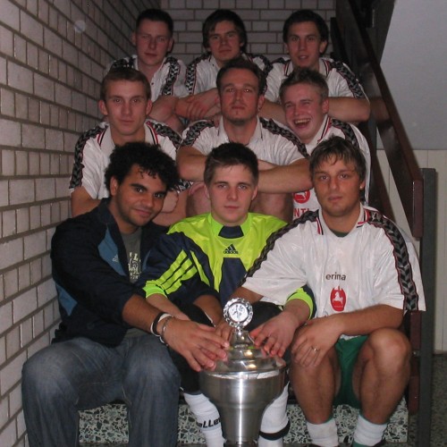 Beim Vereinshallturnier 2007 um den Heinrich Jericho Pokal der Fußballabteilung siegte die Mannschaft der ersten Herren ungeschlagen. Den zweiten Platz belegte in einem spannenden Endspiel die A–Jugend, Torschützenkönig wurde Florian Müller Trainer/Betreuer. Um die Integration und das Wirgefühl zu stärken nahm erstmals auch die B-Jugend an diesem Turnier teil. Sie erreicht aber nicht die Endrunde - als Trostpreis überreichte Fußballobmann Frank Schernikau der Mannschaft 6 Trainigsbälle. Weiter am Turnier beteiligten sich die 2. Herren, Altherren, Altsenioren sowie einer Mannschaft aus Trainern/Betreuern der Jugendfußballabteilung und die Allstars, die sich aus ehemaligen Spielern des Vereins zusammensetzt und damit auch ihren Verbundenheit bekräftigte. Nach der Siegerehrung und einem Dankeschön an die Schiedsrichter, der Turnierleitung, dem Verpflegungsteam und den ca. 100 Fans durch Frank Schernikau wurde noch in gemütlicher Runde über die anstehende Rückrunde der Saison gesprochen. | Bilder zum Bericht klicken zum Vergrößern |
