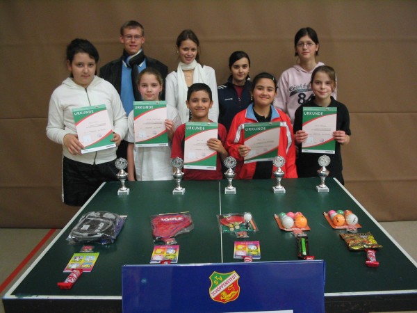 Beim Ortsentscheid 2007 der Tischtennis-Minis konnte sich Celine Wistuba überlegen durchsetzen. Die Elfjährige blieb in allen Spielen siegreich und behauptete sich vor Yesim Er und Aylin Balki. Die weiteren Plätze belegten Yasin Er und Sonja Stahlkopf. Alle Sieger erhielten Pokale, Urkunden und Geschenke. Die besten Kinder haben sich für den Kreisentscheid qualifiziert, der am 4. März in Gr. Denkte stattfindet. | Bilder zum Bericht klicken zum Vergrößern |