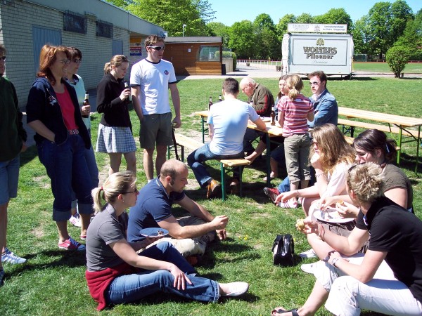 Dabei hatten sich die Spielerinnen der TSV Damen-Handballmannschaft noch einmal beim letzten Training ordentlich ins Zeug geworfen. Das letzte Spiel der Saison und dann noch vor heimischen Publikum sollte noch einmal ein Highlight werden. Die erbrachte Leistung innerhalb der Saison sollte noch einmal unterstreichen werden. Doch die Braunschweigerinnen machten den Handballdamen aus Schöppenstedt einen Strich durch die Rechnung. Freitagvormittag kam die Benachrichtigung vom Staffelleiter, dass das Spiel am Sonntag ausfallen würde. Die Schöppenstedterinnen erhalten zwar die 2:0 Punkte wie für ein gewonnenes Spiel, aber leider nur 0:0 Tore. Als Saisonabschluss hatte man im Vorfeld schon ein kleines Grillfest nach dem Spiel mit den Fans geplant. Was jetzt, wo doch das Spiel ausfällt? Aber schnell war man sich einig, dass das Grillen deshalb nicht auch ausfallen müsste. So traf man sich - auch ohne vorher gespielt zu haben - um 11 Uhr auf dem Sportplatz am Vereinsheim und verbrachte dort einen netten Nachmittag. Trainer Jens Gittermann wurde für sein Engagement in der vergangenen Saison gedankt und Beate Ruppelt sowie Simone Baars als aktive Spielerinnen verabschiedet. Das Training wird allerdings noch ein bisschen weiter laufen, denn wie in jedem Jahr steht noch die Mannschaftsfahrt zum Weißenhäuser Strand an. Dort wird man ein Rasenturnier spielen und will natürlich topfit auflaufen. | Bilder zum Bericht klicken zum Vergrößern |